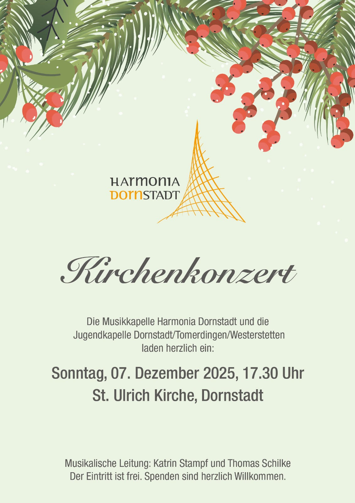 Das diesjährige Kirchenkonzert der Musikkapelle Harmonia Dornstadt am 2. Advent war zweifellos ein gelungener musikalischer Jahresabschluss. Die St. Ulrich Kirche war zur Freude der Musikerinnen